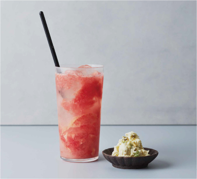 ブラジルを代表するカクテルを、サトウキビ由来の蒸留酒の代わりに焼酎を使いライムと砂糖をイン。“CHILL GREEN spicy & citrus” がベースのほんのり甘く爽快な味です。