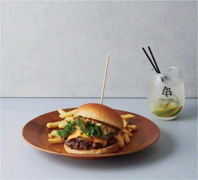 国産牛100%の肉汁ジュワーが癖になるパティに、ほんのり焦がしたパイナップルのタルタルソースが絶妙のボリューミーなハンバーガー。爽やかなライムのお酒とぜひ。