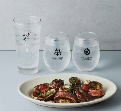 “だいやめ~ DAIYAME ~” ライチのような香りを、“CHILL GREEN spicy & citrus” はスパイシーさを、“CHILL GREEN bitter & tropical” はほろ苦さを生かしソーダ割りで。