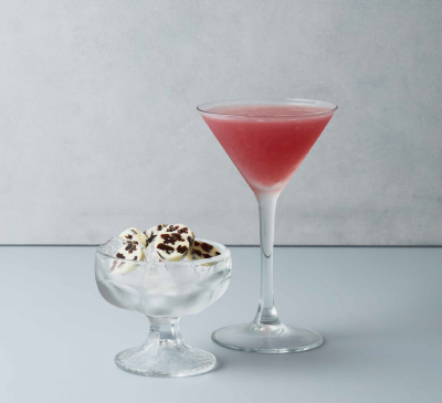 濃厚でミルキーなよつ葉バターを使った自家製のレーズンバターには、甘味と酸味のバランスがいいドリンクを合わせて。芋とライチのような香りが◎なショートカクテルを。