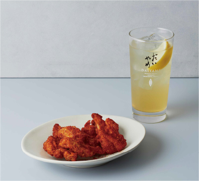 ハーブやレモンピューレが入った特製レモンシロップと、ライチのような香りがする“だいやめ~ DAIYAME ~” を合わせたレモンの焼酎ハイボールで楽しんで。