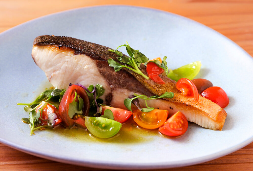 脂の乗った寒ブリを贅沢なボリュームで楽しんでいただけるメインの一品。ケッカソースでさっぱりと食べていただきます。