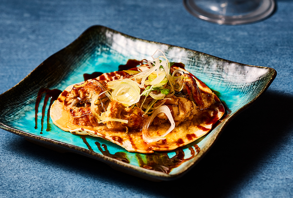 Our signature Unatama—grilled eel with rich, savory egg—is wrapped in a lightly toasted tortilla. The fragrant tortilla enhances the deep umami of the eel, creating a unique harmony of Japanese richness and Mexican lightness. A playful anniversary creation.