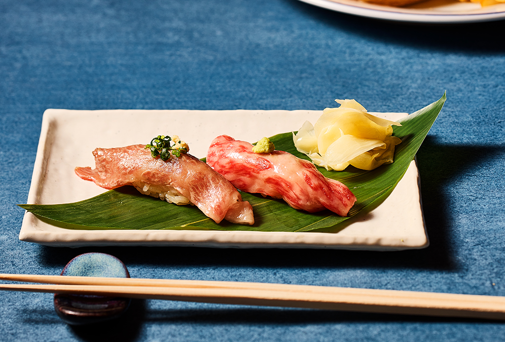 Fujirō, a sushi bar that rarely serves meat, presents a special anniversary offering featuring premium wagyu beef. Lightly seared to bring out its deep umami, the wagyu pairs beautifully with the refined techniques of Edo-style sushi. A rare and memorable piece, available only for the anniversary.