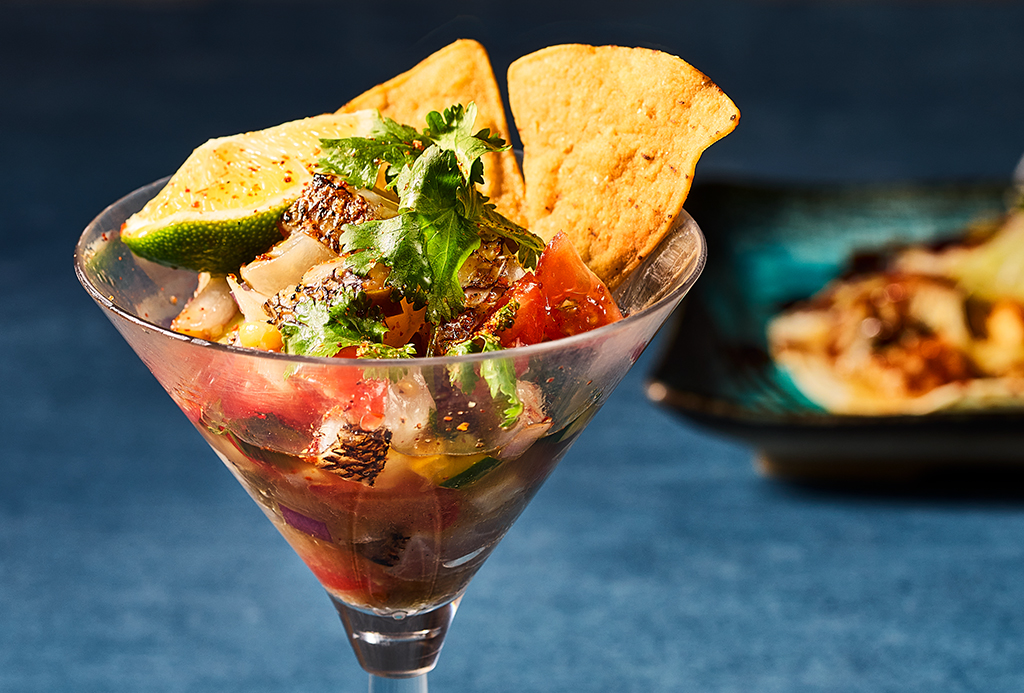 Featuring sea bream, often called the king of fish, it is prepared as a ceviche, the classic South American dish. Bright citrus freshness is layered with the signature spice accents of Molé TAQUERIA Y BAR, creating a vibrant dish perfect for the season. A special anniversary menu that highlights the beauty of fish.